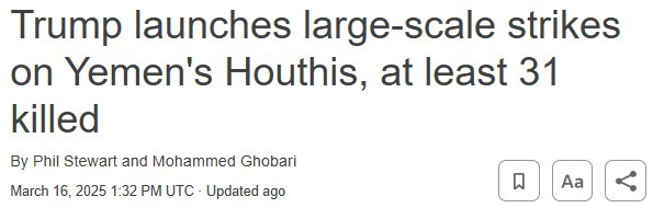 周末黑天鹅:特朗普大鸿沟弥留也门胡塞 严厉劝诫伊朗勿支抓